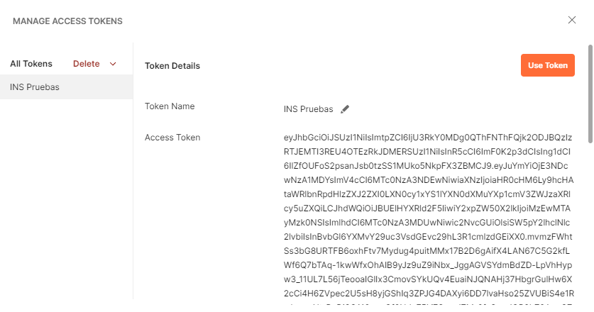 Utilizar el botón "Use token" para cargar el token obtenido en la solicitud actual.
